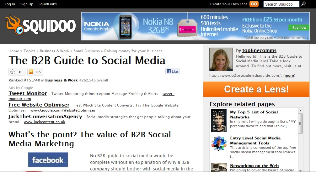 Squidoo still holds some excellent value for your SEO campaign, even post-panda. This is due to the nature of Squidoo only allowing 100% unique content on their domain, keep up the consistency and take the time to write quality, relevant articles in each lens. You’ll see the results a lot sooner if you make heavy content and high volume lenses on each topic. After you are done writing a lens take the time to go and post comments on related lenses, you are trying to generate some interest, comments, and extra views for your lens by doing so. Often times a couple of thumbs up can really help you generate more traffic from the search engines and Squidoo’s internal search mechanisms.